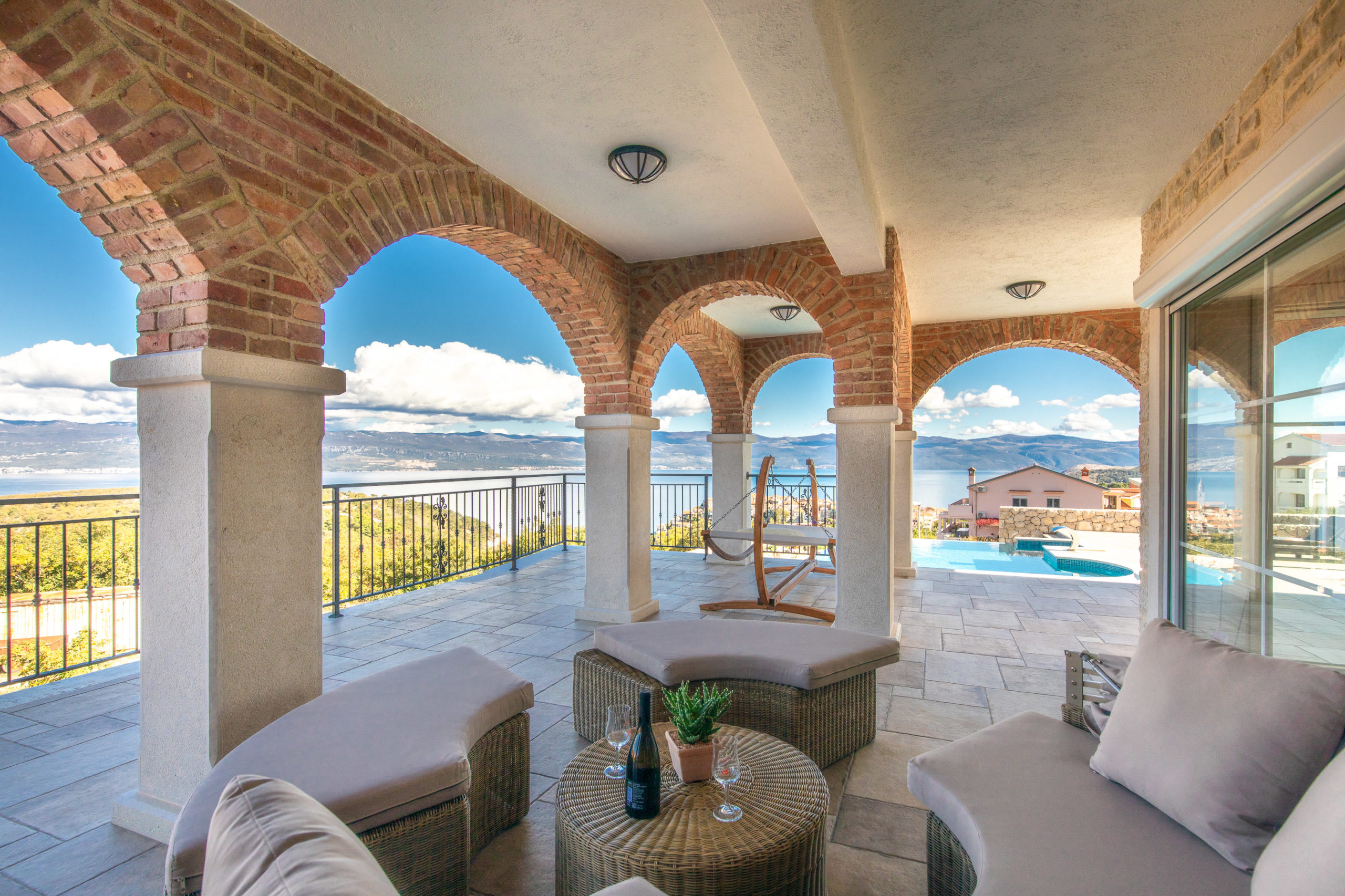On the second floor there is a living room with a summer kitchen, 3 bedrooms, 2 bathrooms and 2 balconies with a sea, city and garden view.