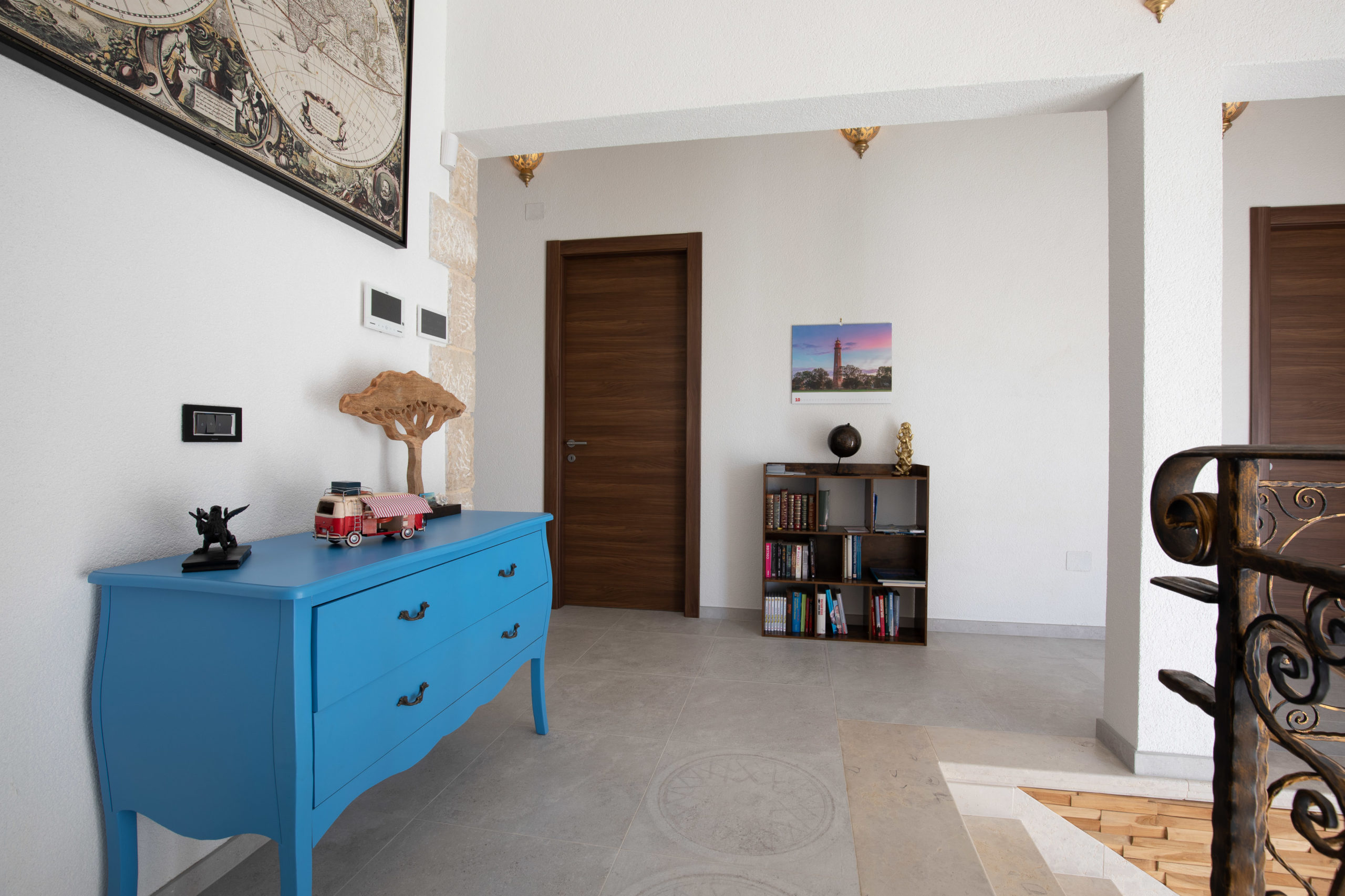 The first floor has a living room, a kitchen, a bedroom with a double bed, a bathroom and a terrace around the whole floor overlooking the sea and the city.